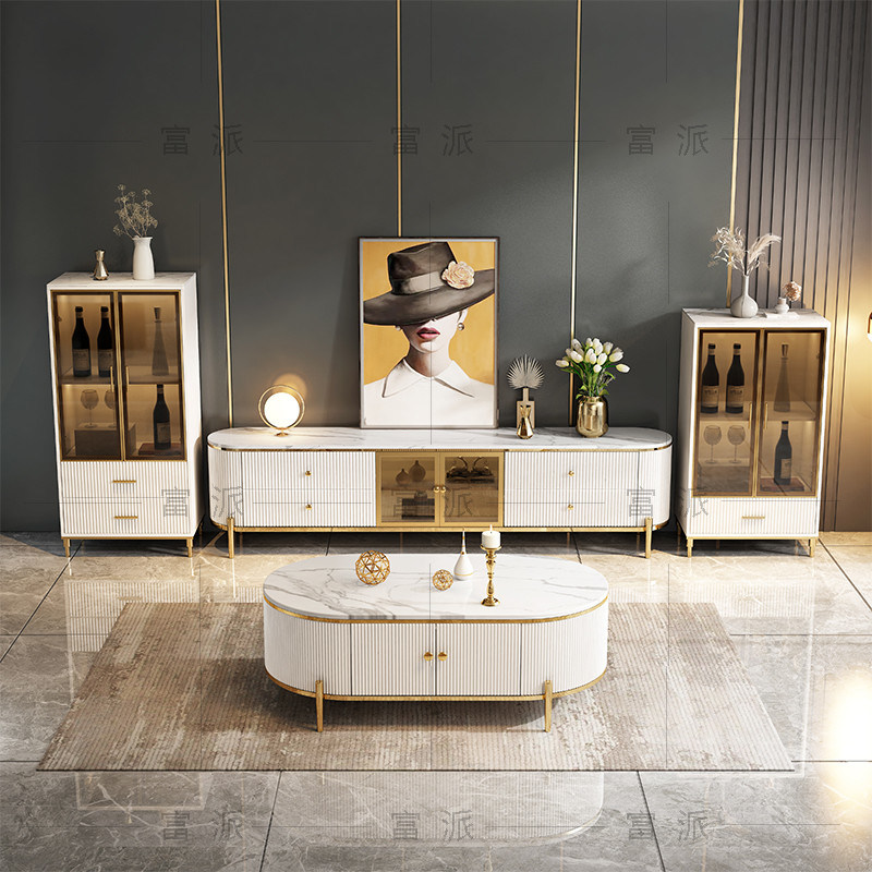 Gabinete simple del hogar TV del mármol de la sala de estar del estilo de la combinación del gabinete de la mesa de centro TV de la pizarra